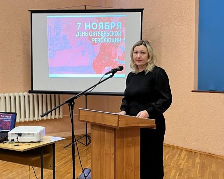 В актовом зале колледжа прошёл информационный час, посвященный Дню Октябрьской революции и Международному дню борьбы с буллингом. Перед учащимися выступили педагогические работники Валуй М.В., которая напомнила о причинах революции, и Мирзикян Ю.О., которая рассказала обучающимся о современных и эффективных методах борьбы с проявлением буллинга в молодёжной среде.