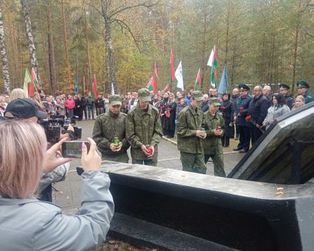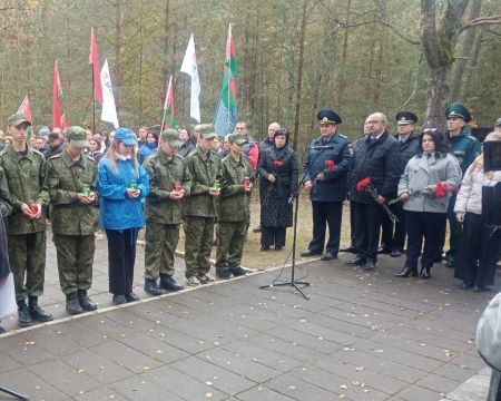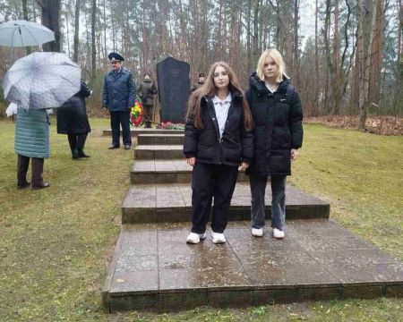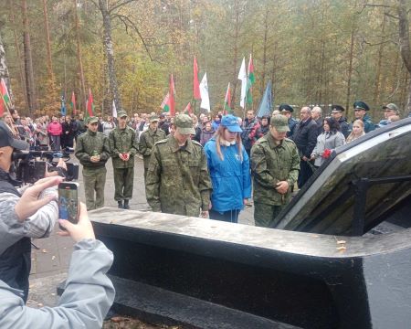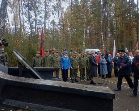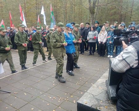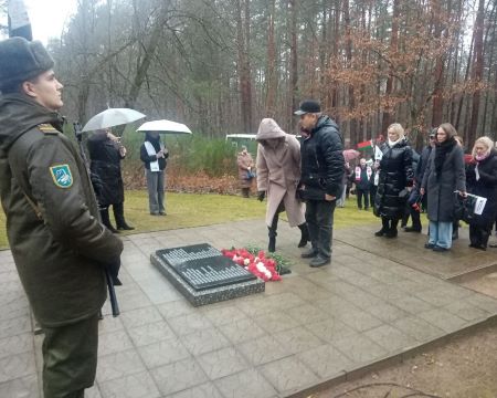 Учащиеся колледжа, воспитанники военно-патриотического клуба «Пламя» приняли участие в митинге, посвященном 83-летию уничтожения Брестского гетто у Братской могилы в урочище Бронная гора Березовского района.