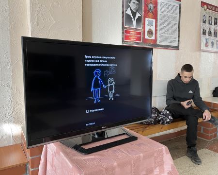 В фойе колледжа был организован показ социальных видеороликов, направленных на профилактику преступлений против половой неприкосновенности несовершеннолетних.