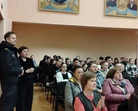 В актовом зале состоялось общеколледжное родительское собрание с приглашением сотрудника РОВД, старшего инспектора ИДН, Дубика П.Л. и директора УП «Березовская СПМК-22», Русака Д.Н.