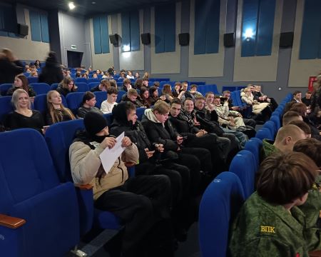 Учащиеся колледжа посетили кинотеатр «Октябрь» г. Берёзы, где просмотрели новый белорусский фильм, режиссёром которого является Г. Азаренок «Душа защитника».