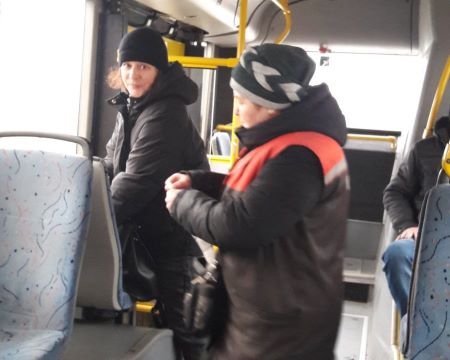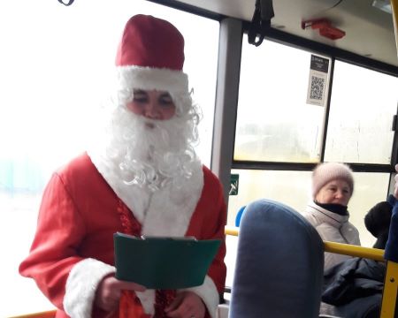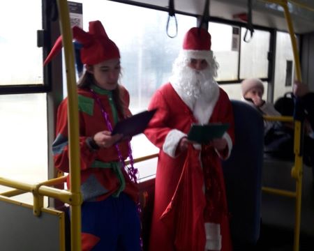 Учащиеся колледжа в автобусе №2 провели акцию "Поднимаем настроение новогодним поздравлением!"